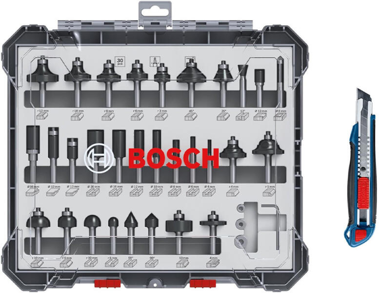 BOSCH Él- és Profilmaró készlet 30 részes 8 mm-es befogással + ajándék kés (0615997654)